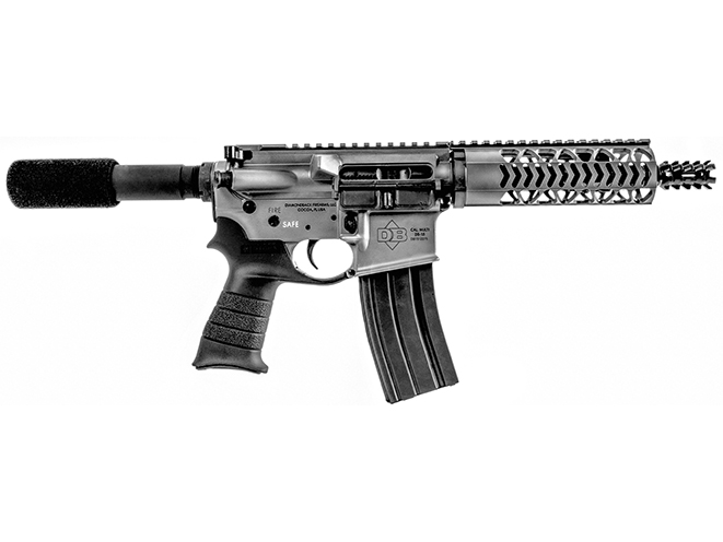 Diamondback Firearms produces the DB15 pistol series. Outfitted with 7.5-inch barrels, flattop receivers and railed, free-floating handguards, the DB15Ps vary in color and furniture options. Available in matte black, OD green and Flat Dark Earth, each DB15P is fitted with Diamondback’s distinctive, aggressive-looking Edge flash suppressor and a Stark Equipment pistol grip with a high beavertail tang for enhanced handling and control.