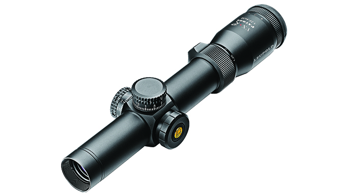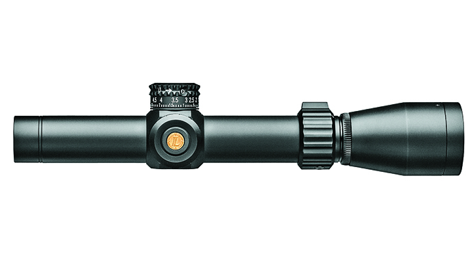 The second-focal-plane Leupold VX-R Patrol has a 30mm tube, a lighted reticle with a motion sensor that shuts the illumination off after 5 minutes of inactivity, fully multi-coated lenses, a generous 90-MOA range of adjustments and a fast-focus eyepiece. (leupold.com; 800-538-7653)