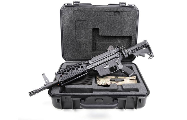 ARES Defense, a company which specializes in manufacturing quality firearms and firearm accessories, is introducing their latest generation ARES-16 Sub-Carbine, brand new for 2014. The ARES-16 Sub-Carbine features an adjustable gas-piston operating system, a quick-change barrel, an ambidextrous M4 charging handle, and a left-side folding buttstock mechanism with an M4 stock which is adjustable for length of pull. This upper assembly is compatible with ARES-16 select-fire lower receivers which have standard fire controls and sears.