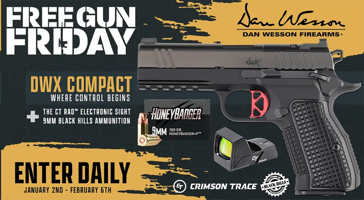 Athlon Untamed Giveaway January’s Free Gun Friday: Dan Wesson DWX Compact, Crimson Trace CT Rad, and Black Hills Ammunition By Ana • January 2, 2026 January's Free Gun Friday: Dan Wesson DWX Compact, Crimson Trace CT Rad, and Black Hills Ammunition If the contest is... Read more »