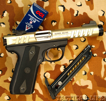 Guns Handguns Semi-Automatic Handguns Ruger 22/45 Lite By Denis Prisbey • April 12, 2012 The new Ruger 22/45 Lite upper receiver is made of aircraft-grade aluminum. Read more »