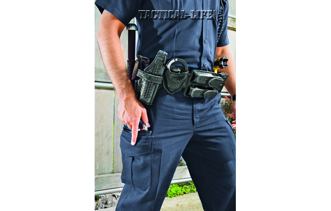 Over the years, I’ve carried my old S&W Chief’s Special as backup in a variety of different ways. I’ve carried it in a Renegade Holsters ankle rig, a pocket holster from Uncle Mike’s and stuffed in my waistband using a Barami Hip-Grip in plainclothes. Pocket carry is the most secure and most comfortable. We used to wear Tuffy waist-length coats or parkas, which allowed us to carry a small revolver in our outside or inside coat pocket. Heavy coats have mostly gone away except in the coldest climes, and the newer-fabric jackets and windbreakers would sag to one side if a pocket were used. What is nice is that cargo pockets on duty trousers now offer another carry option. Regardless of which pocket you choose—front pants, rear or BDU—a holster is mandatory to properly position the handgun for the drawstroke and to protect the trigger from an unintentional press.