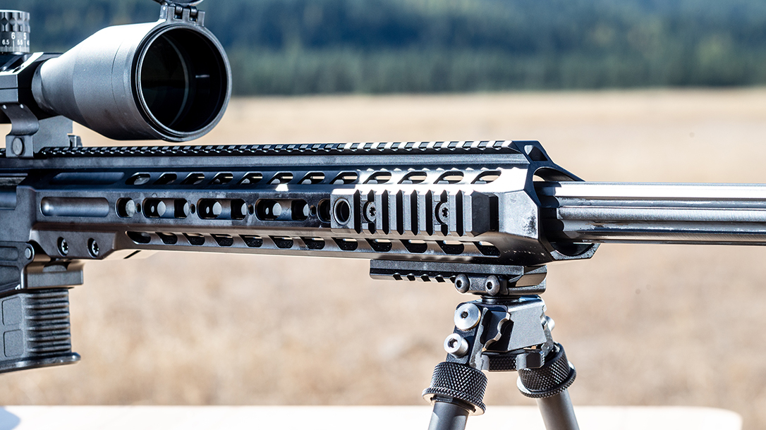 One of the standout features of the MRAD is the monolithic upper receiver that integrates the forend with the action. The first major advantage of this is that there’s no way for the action to work loose because of the way it’s attached to the chassis. The second advantage is that it allows users to mount an optic wherever they wish. On other guns, any attempt to mount glass on both the receiver and forend would result in unpredictable shots as the two components shifted independently. A monolithic upper allows the shooter to mount a scope anywhere on the rail.