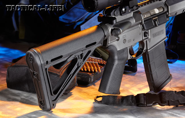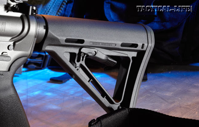 Also forged from 7075, the lower receiver contains high-quality internals, including a Geissele Automatics Super Semi-Automatic (SSA) two-stage trigger. A semi-automatic version of Geissele’s Super Select-Fire (SSF) trigger, it may be the most field-proven two-stage AR trigger available. Mapgul’s MOE pistol grip and triggerguard are also equipped, providing solid control and allowing for glove use. The six-position buffer tube holds a Magpul MOE buttstock.