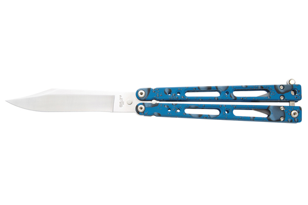 Knifemakers Bear OPS added eight new models to their expanding line of butterfly knives. These tough, durable knives have Bowie clip blades made of premium 14C28N stainless steel, which provides a combination of edge sharpness, edge retention and corrosion resistance. They are heat treated to an ideal Rockwell hardness of 58-60.