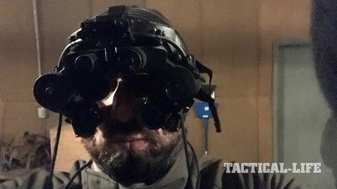 At night, we hit the range for more time with the APX for low-light classes. Working the gun with a handheld light emphasized the task that a patrol officer routinely faces when operating a handgun and a handheld light simultaneously, and it demonstrated the ease with which the APX can be operated with and without light. After an introduction to the Steiner AN/PVS-21 low-profile night-vision goggles (NVGs), we learned why an efficient pistol matters to those who run NVGs.