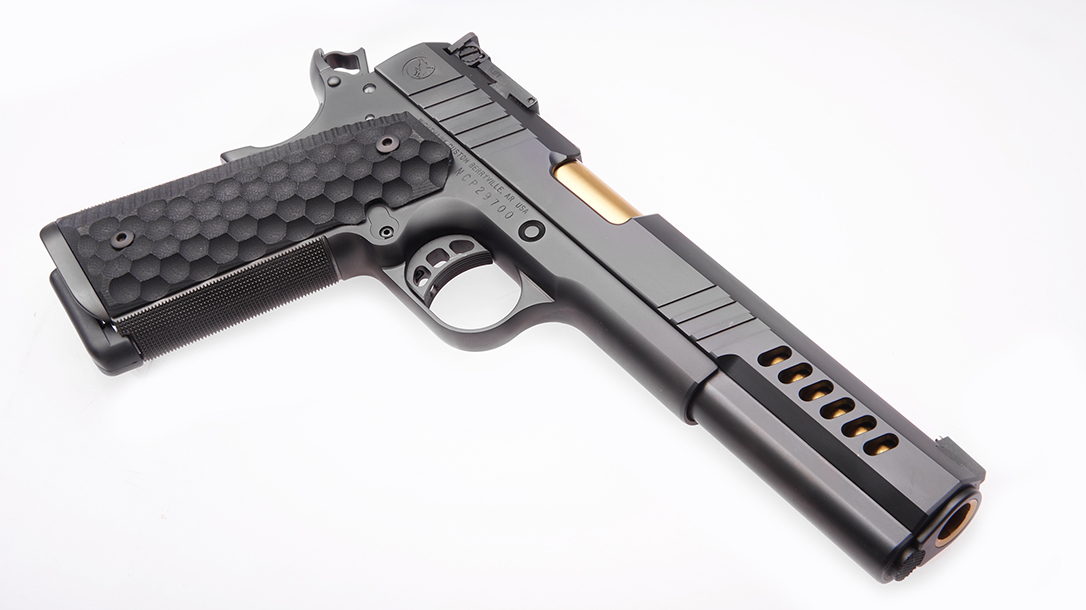 Five of the 1911s have single-stack magazines containing nine or 10 rounds. However, the Wilson followed the beat of a different drummer with its 15-round, double-stack magazine.