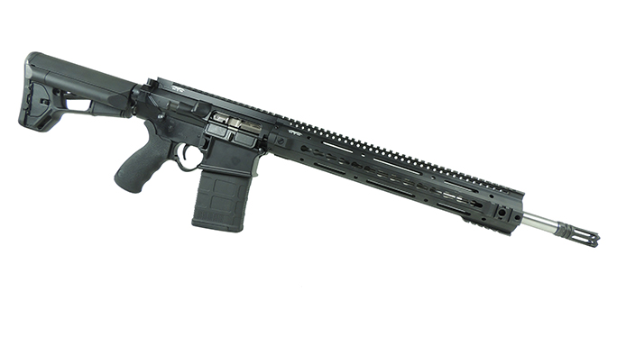 The 16.5-inch barrel is nitride heat-treated and features a 1-in-8-inch twist rate. But the barrel is also innovative because it comes equipped with a well-designed heat sink barrel nut that helps dissipate heat. Surrounding the barrel and gas system is the Renegade handguard, which is designed with Magpul M-LOK slots along the 3, 6 and 9 o’clock positions for accessories while a small bottom rail at the front of the handguard can accommodate a bipod or foregrip. The handguard has a full-length Picatinny rail in the 12 o’clock position to accommodate sights, and four quick-detach (QD) sling sockets are positioned at the front and rear on both sides of the handguard. (pof-usa.com; 877-561-9572)
