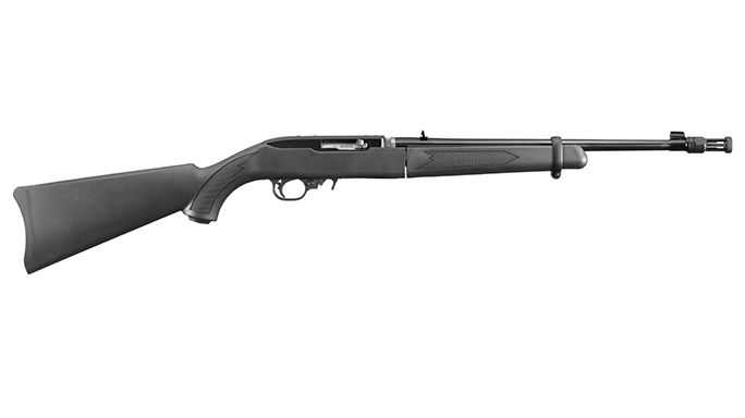 Compared to centerfire rifles, rimfires create less of a sound signature and use lightweight ammo, so you can carry more of it. Ruger reengineered its popular 10/22 semi-automatic rifle to create the 10/22 Takedown, which fits in its own backpack. The user simply attaches the action/stock to the barrel/handguard, making it ready for whatever comes your way. The barrel is threaded for use with the equipped flash suppressor or a sound suppressor. (ruger.com)