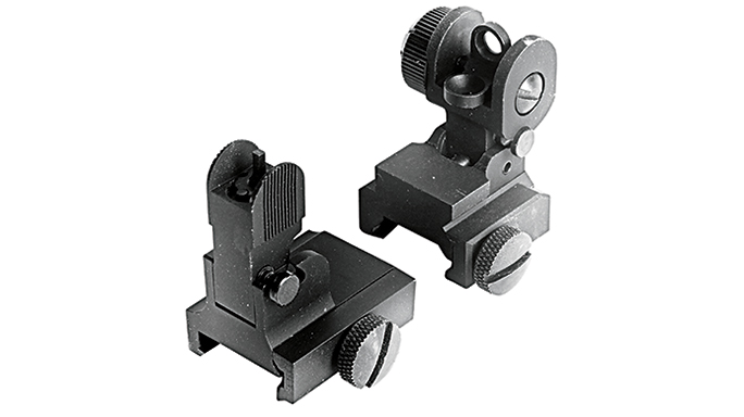 Flip Up Combo from American Tactical (AT) is an all-metal sight set for use on AR rifles. The rear sight has two apertures and is fully adjustable. The front sight of the system has an adjustable post. AT offers sets for ARs with flattop uppers and railed gas blocks as well as ARs with free-floating rails on the same plane as the upper. (americantactical.us; 800-290-0065)
