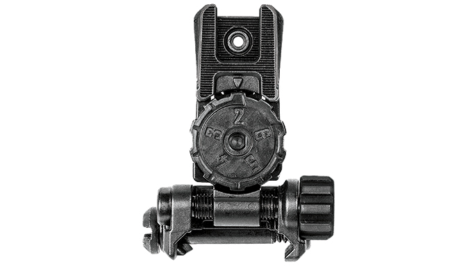 Built with all-steel construction, the MBUS Pro LR features elevation adjustments to accurately engage targets at variable distances. The unit offers no-tool adjustments in a compact package. Positive detents keep the MBUS Pro LR at standard AR sight height when deployed and low profile when stowed. (magpul.com; 877-462-4785)