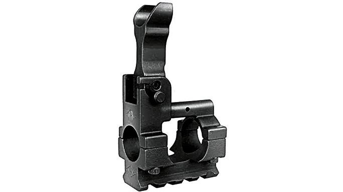 The YHM-9835-H flip-up front sight is convenient as well as versatile with a built-in bottom Picatinny rail. The built-in gas block has a bore diameter of 0.75 inches and is completely made of steel. The unit is available with either a round, hooded front sight guard for fast and accurate sighting or a standard-style front sight guard. (yhm.net; 877-892-6533)