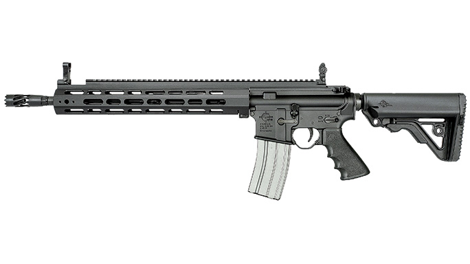 The LAR-15 series is the broadest of Rock River Arms’ lineup with 40 models available in 5.56mm NATO and an additional 14 left-handed versions. New for 2015 is the PDW A4 SBR, which is the company’s first cataloged short-barrel rifle. The PDW is a flattop with a 10.5-inch barrel, an A2-style flash suppressor and an overall length of just 24 inches and 28.3 inches with its stock collapsed and extended, respectively.