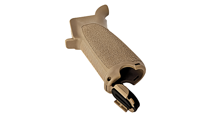 TangoDown BG-17 Battlegrip: The B-17 is larger than TangoDown’s BG-16 grip. The increased size and extended backstrap with beavertail are made for users with large hands. The soft rubber conforms to a user’s grip and helps reduce felt recoil. In the butt is a small weather-resistant storage compartment. Available in black or Flat Dark Earth finishes.