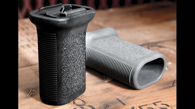 TacStar AR-15 Tactical Front & Rear Grip Set: The ergonomic design and aggressive styling of the AR-15 Tactical Front and Rear Grip Set offer operators secure weapon handling in any environment. The finger-groove design of both the rear and front grip offer excellent control. The front grip can be pushed forward or aft to suit the situation. The grips are made from Pachmayr’s recoil-absorbing