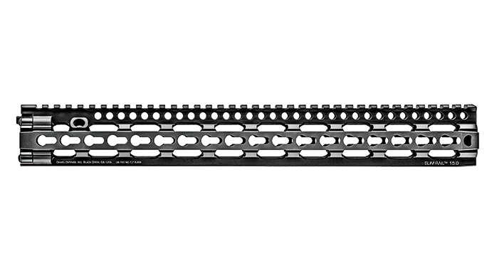 Daniel Defense SLiM Rail: The free-floated SliM Rail (Slim, Lightweight, Modular) uses a KeyMod system for attaching accessories at the 3, 6 and 9 o’clock positions. Constructed of aircraft-grade 6061-T6 aluminum, the SliM offers an uninterrupted Picatinny top rail in three lengths: 9-, 12- and 15-inch options to fit your carbines and rifles with ease. The rails offer superior cooling and ergonomics while maintaining strength and durability.