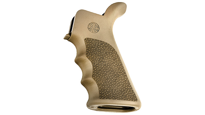Hogue Beavertail Grips: Incorporating ergonomics-enhancing finger grooves in the frontstrap and a comfortable texture for a secure grip, the Hogue overmolded beavertail grips provide extended length of pull and added support for the web of an operator’s hand. It includes a triggerguard filler and is available in black, OD green, Flat Dark Earth, Ghillie Green, Ghillie Earth, pink, purple and Red Lava.