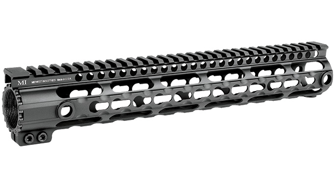 Midwest Industries MI-SSK 12-Inch KeyMod Rail: Slim and light while packing in a lot of performance, the MI-SSK KeyMod Rail in its 12-inch version weighs only 8.5 ounces. Made from 6061 aluminum and featuring a hardcoat anodized black finish, the top features a long Picatinny-style rail while the sides are KeyMod. Both rail types offer numerous attachment points for accessories.