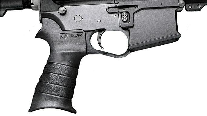 Stark BRU Pistol Grip: The BRU (Basic Rifle Upgrade) Pistol Grip is similar to Stark’s SE-1 grip, but it has no integral triggerguard so the BRU can be installed on nearly any AR platform, even those with billet lower receivers. The grip geometry offers a natural shooting hand position. The hand stop on the upper backstrap locks your hand in at the same position so your index