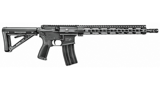 5.56 CDI: The CDI rifle from Windham Weaponry is designed to deliver exceptional performance at a reasonable price. The 5.56mm carbine sports a 16-inch barrel with a 1-in-9-inch twist that is made of 4150 chrome moly vanadium steel, chrome-lined and topped off with a high-performance Vortex flash suppressor. The forged upper and lower receivers are made from 7075-T6 aluminum, and the upper features a flattop for accepting optics. The forend of the carbine is a Diamondhead free-floating unit equipped with a Magpul AFG foregrip. A Magpul MOE pistol grip and six-position collapsible stock round out the package.