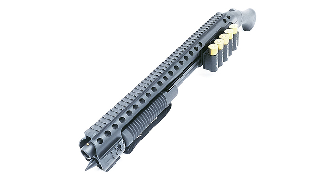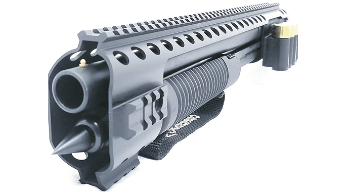 Florida-based Black Aces Tactical has released a quad rail and side shell holder combo designed specifically for that non-NFA pump-action “firearm” you know and love, the Mossberg Shockwave.