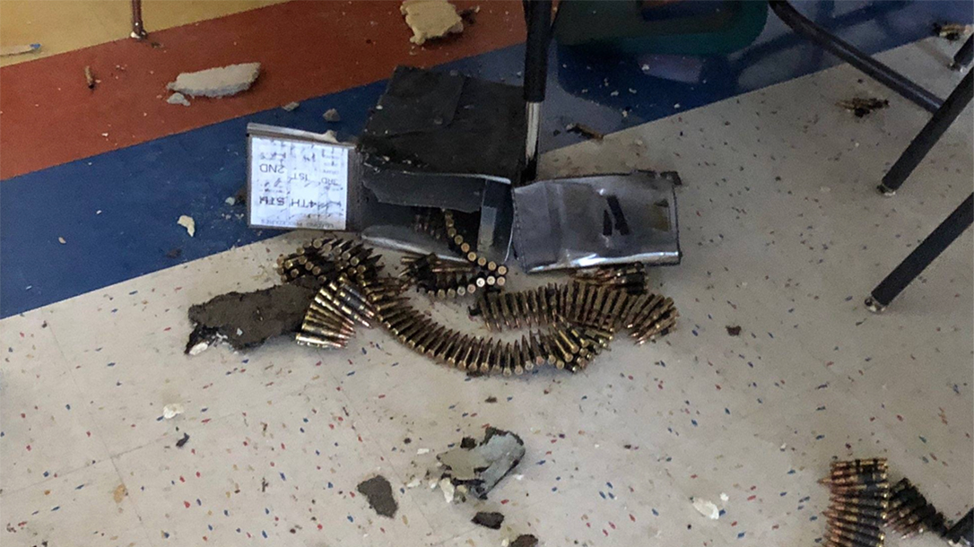 El Paso Times reports that classes had let out for the day at Parkland Elementary School when the ammo box fell and landed in a classroom at around 3:45 p.m. on Thursday, causing a power outage in one area of the building.