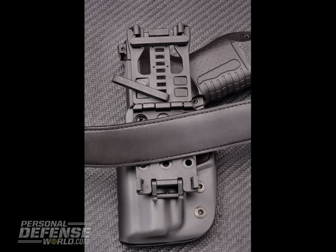 Blade-Tech holsters are secure, extremely durable and compact enough for concealed carry use even with large-frame semi-autos, such as the Walther P99 shown.