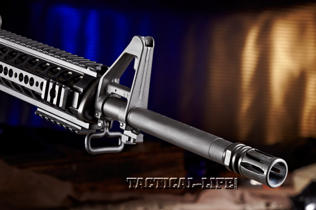 The mil-spec barrel, made from 11595E steel, features a chrome-lined bore and chamber. The barrel is also high-pressure (HP) and magnetic-particle (MP) certified. While pressure testing is fairly common, MP testing is only required of true mil-spec parts. This process consists of using a magnetic field to detect any imperfections in the surface or subsurface of the part, ensuring that only the highest-quality parts are being used. The barrel also features a mil-spec 1-in-7-inch twist rate, which allows the barrel to stabilize even the heaviest bullets.