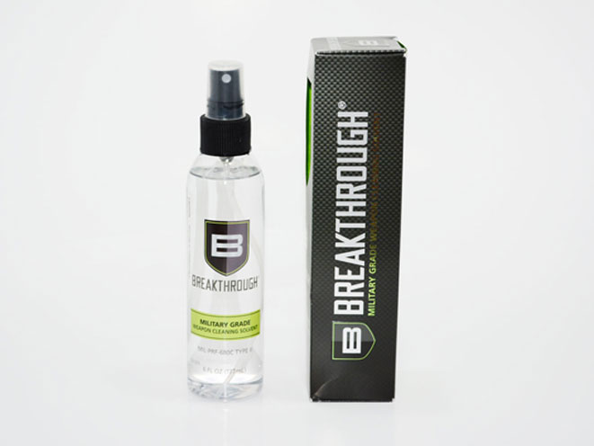 Breakthrough® Military-Grade Cleaning Solvent — a non-water based distilled petroleum solvent that through our proprietary distillation process has had all carcinogens and hazardous waste materials virtually wiped out of the formula. Breakthrough® Military-Grade Cleaning Solvent has no odor, is non-staining, removes all fouling, while completely evaporating, leaving absolutely no residue behind. And it’s truly pH neutral, which means it’s safe on your firearm’s wood, plastics, polymers, cerakote and/or hydro-printing. And unlike traditional firearm cleaning solvents, Breakthrough Military-Grade Cleaning Solvent has a flashpoint of 150° F and is therefore considered non-flammable. Breakthrough® Military-Grade Cleaning Solvent cleans efficiently, dramatically reducing the duration of cleaning while using less product.