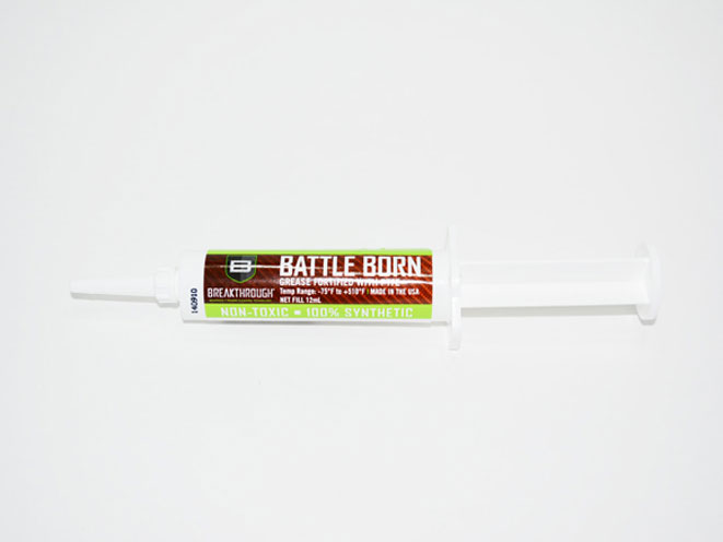 Battle Born Grease — represents some of the most advanced lubricant technology. It is a versatile, premium quality, synthetic grease fortified with Sub-Micron size PTFE. Blended completely with pure synthetic base oils, additives, and shear stable thickeners to provide maximum firearm protection in extremely high and low temperatures (from -75°F to 510°F).