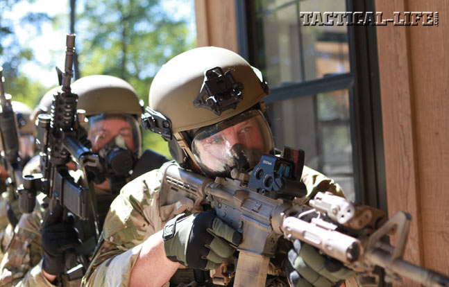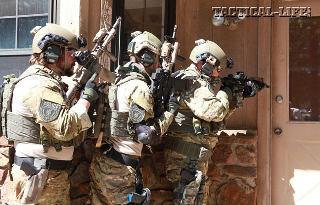 The Bryant ERT is an all-volunteer, 15-person organization including two sworn medics, a full-time firefighter and a flight medic for the local hospital who responds with the team. All of the team members receive the same training to ensure that they can all work together regardless of the situation. To achieve that consistent proficiency, the BPD trains not only in-house but outsources some specialty classes with select off-site organizations, including the Benton Police Department and the Direct Action Resource Center (DARC). The DARC is a comprehensive tactical training group that specializes in instruction on using gas and dynamic breaching as well as mission preparation, planning and execution, including live-fire and reality-based scenarios with kinetic feedback (see the January 2014 issue of TACTICAL WEAPONS).