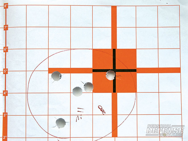 The 1911 ran reliably, and the barrel seemed to prefer 200-grain rounds.