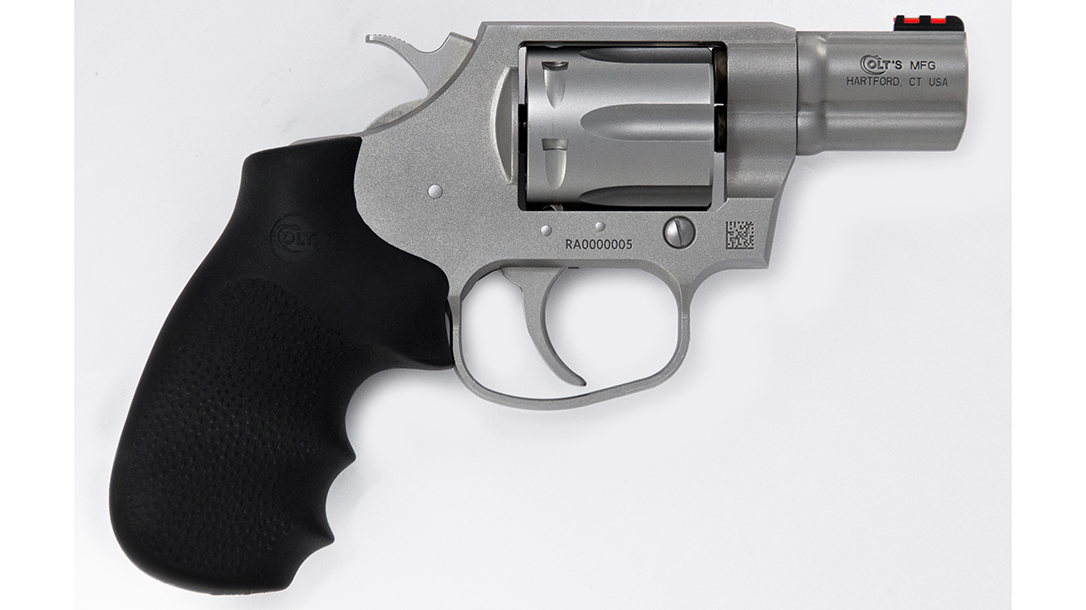 Approved models include the 2-inch stainless matte Cobra with fiber-optic front sight, along with its big brother, the brushed stainless steel, 3-inch .357 King Cobra with brass bead front sight. The 2-inch matte black DLC coated, .38 Special Night Cobra–one with custom Colt G10 grips, the other with hyena brown grips and brass bead sight also gained approval. Colt says all four approved models are now shipping to California dealers for purchase.