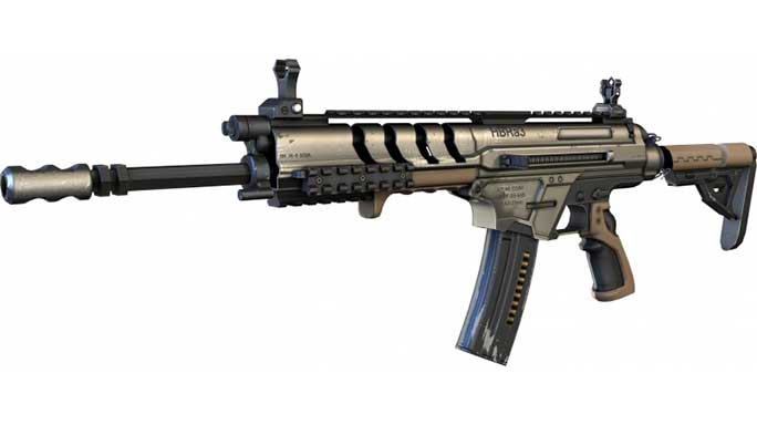 The fully-automatic HBRa3 is used by Sentinel Task Force operatives and the USMC in Advanced Warfare. As the IMFDB notes, it seems to be a reworking of the CZ 805 BREN in Ghosts, and visually resembles the Robinson Armament XCR. It features a VLTOR style stock and seems to be chambered in 7.62x39mm, if the magwell is any indication.