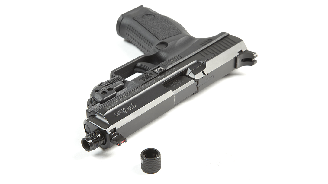 The slide houses a match-grade, 4.98-inch barrel with metric 13.5x1mm threading up front. If your suppressor sports English threading, its manufacturer probably offers an inexpensive replacement piston so it’ll work with this gun.