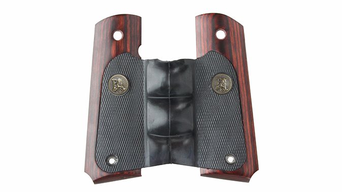 While many CCW shooters prefer small, pocket-style weapons, others favor the advantages inherent in a full-sized handgun, like the very popular Model 1911. Pachmayr’s American Legend grips address those needs and come in a range of materials and patterns to choose from, including rosewood, charcoal silvertone and heritage walnut laminate. These grips come with attractive wood trim and recoil-absorbing rubber panels with comfortable finger grooves. They feature a wraparound design with relief cuts for ambidextrous safeties and the mainspring housing pin. The American Legend grips for 1911s start at $50.