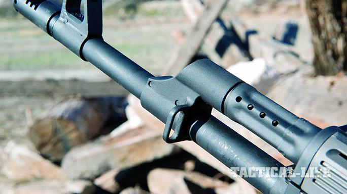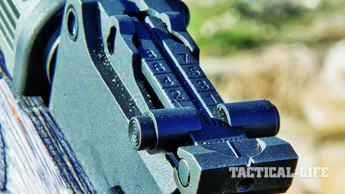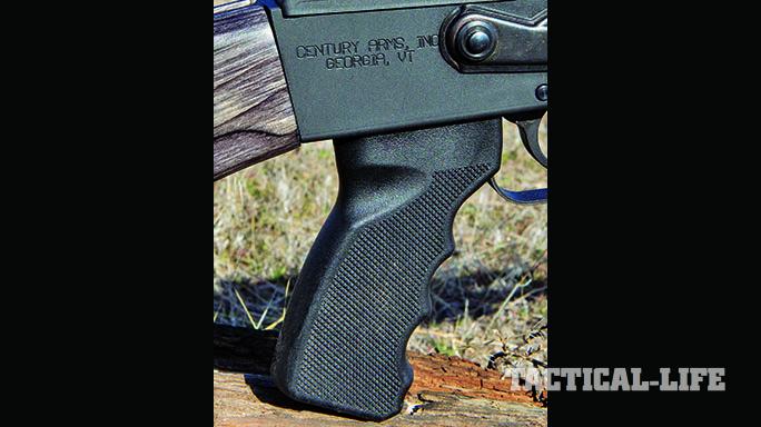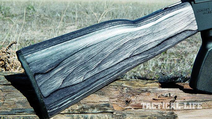 The rear sight is adjustable for elevation and windage. The internal parts are American-made, and while my earlier test model came equipped with a contoured pistol grip and TAPCO trigger unit, newer versions feature Century’s own RAK-1 trigger groups. My test model also came with laminate furniture, though Magpul stocks are available.