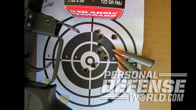 To test the pistol at the range, I tapped into some of my 7.62x39mm ammo stash and brought along Hornady’s new 123-grain Black SST ammo, which features polymer-tipped bullets in brass cases. I also had Red Army Standard 122-grain FMJs and Winchester’s “White Box” 123-grain FMJs. I lost about 200 fps in the RAS47’s 10.6-inch barrel compared to a standard 16-inch-barreled rifle. This decrease in velocity was expected.