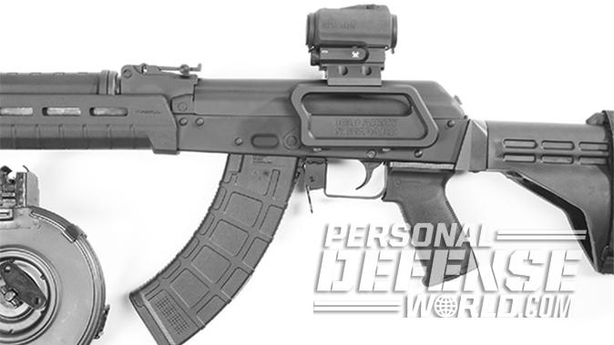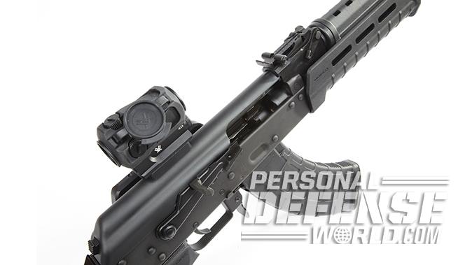 The action on my test RAS47 was smooth and easy to operate. I manipulate AKs by sliding my support hand under the gun to rack the bolt. When using this method, my view of the weapon’s sights aren’t obstructed and my firing hand always stays on the pistol grip. A bolt-hold-open notch is also cut into the receiver for the safety selector, which allows the user to keep the bolt open, a feature I’ve come to like on Americanized AKs.