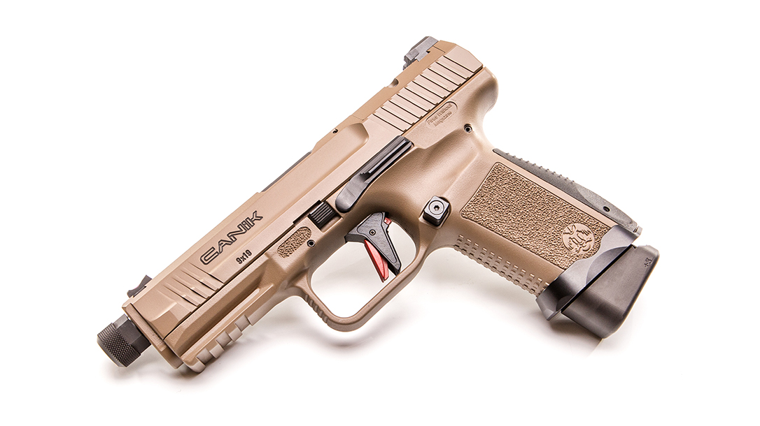 Both Century and Salient Arms chipped in on the enhancements. The Salient Arms customizations include fiber optic sights; fluted and nitrited match-grade barrel; aluminum magwell; and a convex thread protector with 13.5x1mm left-hand threads. Meanwhile, the Canik customizations includee aluminum plus 3 magazine extensions; flat-face trigger; extended mag release; and an optics-ready slide with adapter plates and a charging handle.