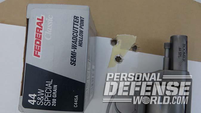 I put the Charter Arms Boomer through its paces with an assortment of .44 Special cartridges: Federal’s 200-grain Classic HPs, Winchester’s 200-grain Super-X HPs and Hornady’s 165-grain Critical Defense FTXs.
