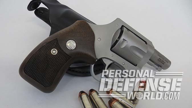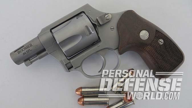 I got my hands on a Charter Arms Boomer with checkered walnut grips for testing. The gun’s grip affords a good hold when unleashing .44 Special loads, especially in this lightweight, compact revolver. Unlike some other revolvers, the Boomer uses a one-piece frame like all of Charter Arms’ revolvers, which results in exceptional durability.
