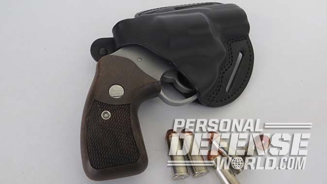 The Charter Arms Boomer employs features found on other Charter Arms DAO revolvers like the bobbed hammer, which is flush with the rear of the frame so there is no hammer spur to snag on a shirttail or coat pocket when drawing the revolver. The front edge of the cylinder is nicely beveled for easy reholstering without tearing up your rig.