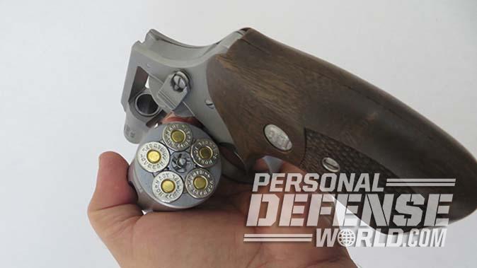 The Boomer is made of stainless steel and wears a matte stainless finish. In testing, I never noticed a glare reflecting off the gun, even in direct sunlight. The trigger is grooved so when your finger starts its press, your fingertip sticks to the trigger and does not slip. The DAO trigger on my test gun measured slightly over 12 pounds, but it feels much lighter, no doubt due to the smoothness of the trigger pull. The Boomer uses a coiled mainspring, and I only noticed a slightly perceptible amount of stacking during the trigger press. I think this is a well-thought-out trigger pull weight for a concealed-carry revolver. It’s not too light for safety reasons and not so heavy that the trigger press interferes with sight alignment.