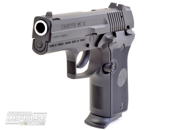 The Chiappa MC 14 has a strong resemblance to another classic .380, the Beretta Model 84F. Beretta discontinued its classic 13+1 capacity Model 84 series in 2013 after more than three decades of production. This new .380 from Chiappa is actually a Turkish transplant being produced for Chiappa by the Girsan Machine & Light Weapon Industry Company in Giresun, Turkey. Girsan, which was established 21 years ago, produces a complete line of semi-autos ranging in caliber from .32 to .45, with the MC 14 being the latest .380 model for Chiappa (which also sells Girsan’s 9mm M 9).