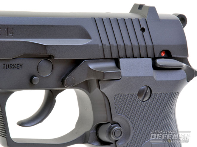 The cold-hammer-forged, 3.82-inch barrel is polished and hard-chrome plated for appearance and durability. Overall, the MC 14 is well built with a precise frame-to-slide fit. Turkish armsmakers on the whole do fine work, and the MC 14 in its basic matte black finish is a well-built pistol that is easy to operate and quickly get into action.