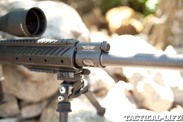 The first thing you notice when you pick up this rifle is its light weight—6 pounds 13 ounces without an optic. That’s not an outrageously low weight until you take a look at the nearly 1-inch barrel contour. This barrel is a 20-inch carbon-wrapped featherlight tube with a 1-in-8-inch twist rate. A titanium flash suppressor tips the muzzle. Christensen Arms history reveals how the company began specializing in carbon fiber barrels. The owner of the company, Roland Christensen, has been in the prosthetic business since 1985, according to a Christensen Arms representative. His prosthetic limbs have been made primarily out of carbon fiber. Christensen’s designs and manufacturing techniques have pushed his feet to the top of the prosthetic market. The Freedom Innovations feet are fruits of his labor. He also has an aerospace company that manufactures carbon fiber satellite dishes, airplane wings, helicopter parts and much more.