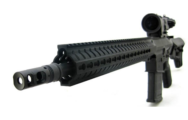 The Mk3 CBR features the free float RKM15 KeyMod hand guard that measures 15 inches in length to accommodate a wide range of hand positions and allows users to attach an assortment of different accessories. The KeyMod slots are located at the 3, 6 and 9 o’clock positions with a 1913 Picatinny rail on top to give the hand guard an array of mounting options.
