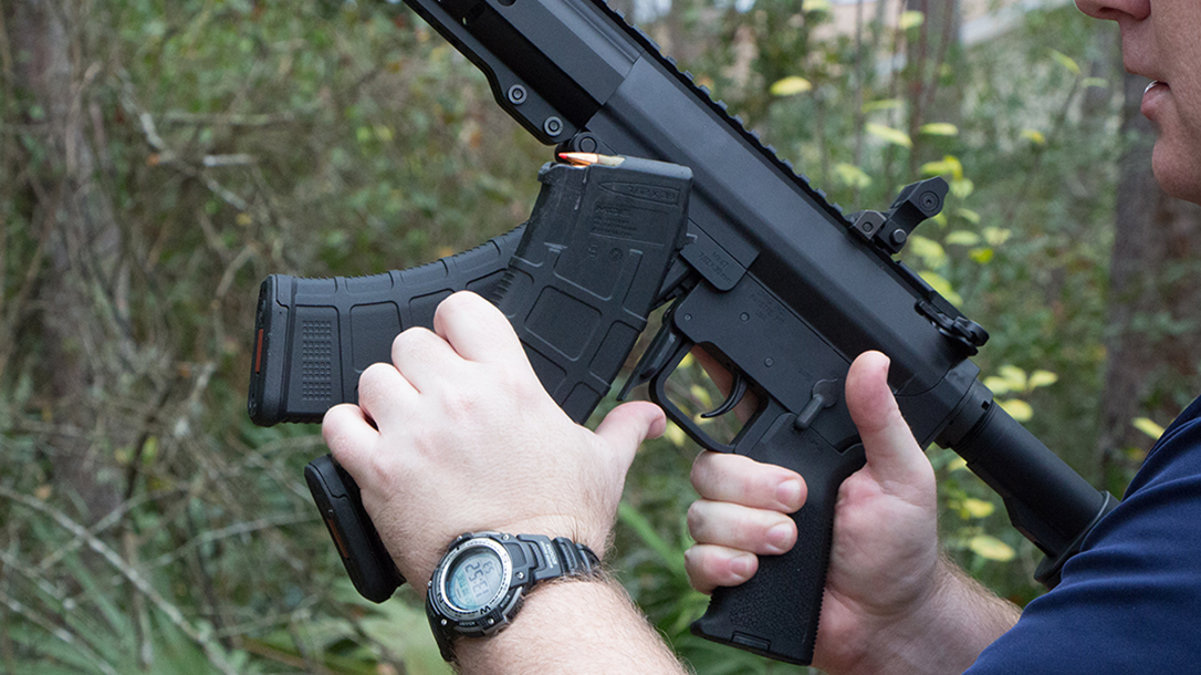 CMMG ships the Mutant with a single Magpul AK-type 30-round PMag. The rifle should also work with any standard AK magazine. Although I’ve always had good luck with military-surplus magazines, there is the possibility that some surplus magazines are made too far outside of the normal dimensions to work properly. Chances are those same magazines would cause you problems in most AK-type rifles and should be dumped in the nearest trash bin. Quality AK magazines—both new and surplus—are readily available.