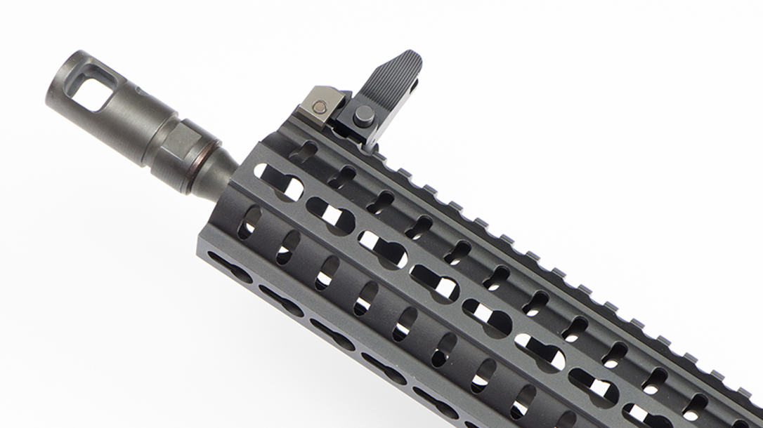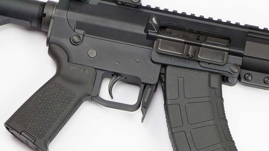 Base model Mk47 T rifles ship with an A2-style pistol grip and muzzle device, a single-stage trigger and a six-position-adjustable buttstock. The Mk47 AKM is the model I received for testing. This rifle is functionally the same as the model T, but with a CMMG SV muzzle brake, a Magpul CTR buttstock and a Magpul MOE pistol grip. The top-of-the-line AKM2 replaces the single-stage trigger with a Geissele SSA two-stage trigger.